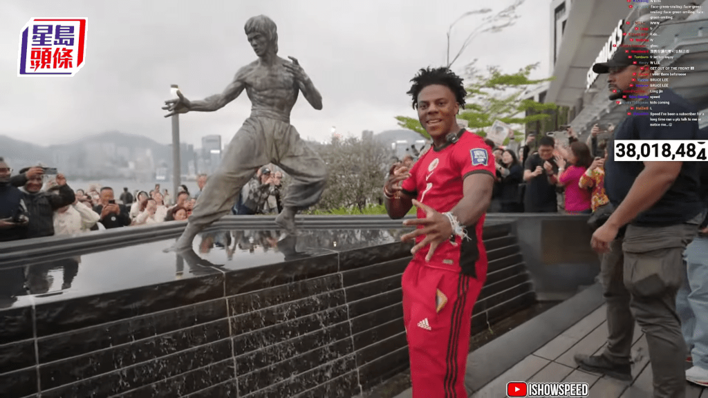 美國網紅IShowSpeed訪港直播近10小時 遊廟街大讚牛雜 星光大道興奮與「李小龍」打卡