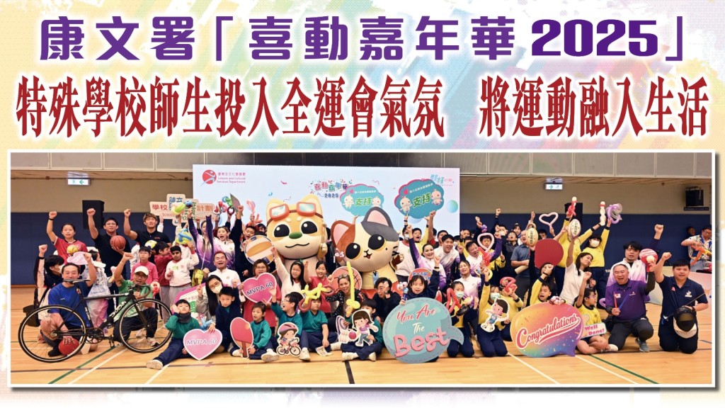 由康樂及文化事務署(康文署)主辦的「喜動嘉年華2025」已於11月14日(星期五)在石硤尾公園體育館圓滿舉行,吸引超過550位來自全港多間特殊學校的師生參與。活動以「同心投入全運會」為主題,響應第十五屆全國運動會(十五運會)及全國第十二屆殘疾人運動會暨第九屆特殊奧林匹克運動會(殘特奧會),透過提供多元化的運動體驗,讓學生感受做運動的樂趣,並鼓勵他們建立健康活躍的生活模式。 康文署更特意挑選由香港賽