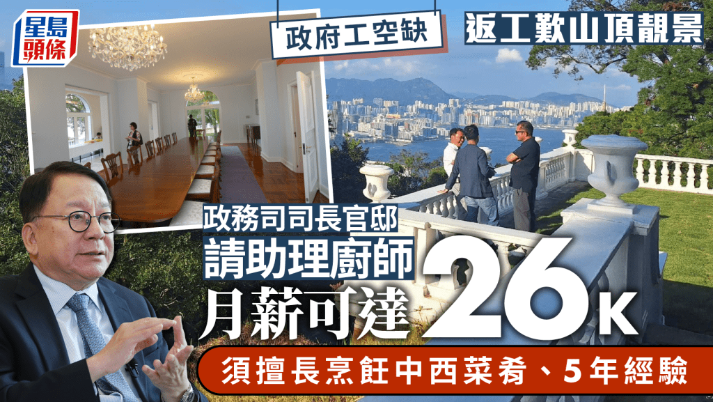 政府工空缺2025︱陳國基官邸請助理廚師可達$26K/月 須擅長中西菜餚及5年經驗 即睇點申請!