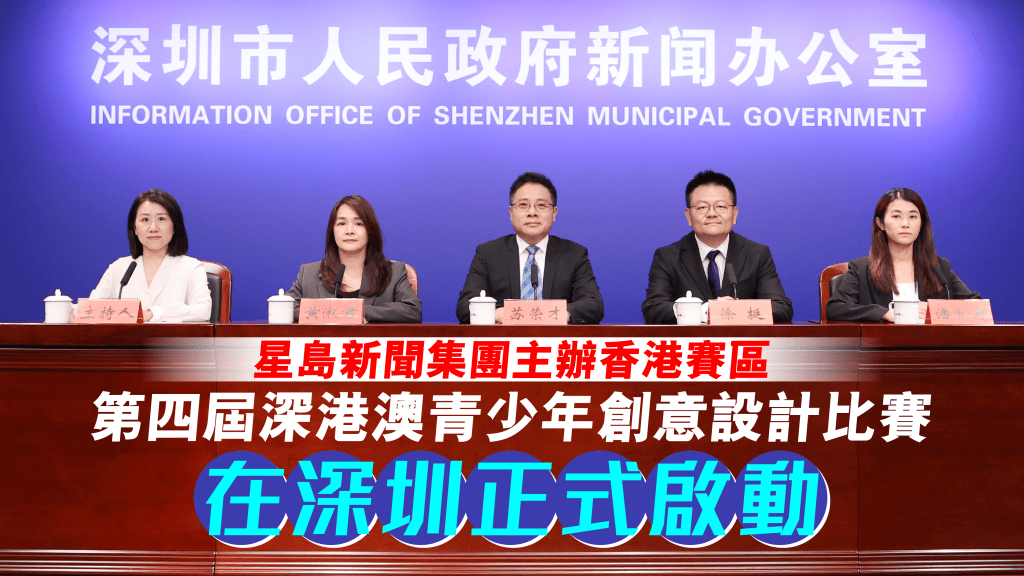 第四屆深港澳青少年創意設計大賽今日(10月10日)於深圳市政府新聞發佈廳舉行發布會,比賽由中共深圳市委宣傳部、深圳市教育局、香港特別行政區政府教育局、澳門特別行政區政府教育及青年發展局等10家單位指導,深圳創新創意設計發展辦公室、深圳市文化創意與設計聯合會、深圳青年聯合會、香港星島新聞集團、澳門文化推廣協會、澳門中華民族文創學會等三地機構聯合主辦。