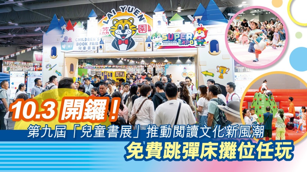 第九屆「兒童書展 暨 超級親子用品展」(兒童書展)將於2025年10月3至5日在亞洲國際博覽館舉行。今年主題為「兒童動漫卡通嘉年華」,設有多項精彩活動,如「卡通動漫新中國」大型充氣歷史探索展區、荔園嘉年華、免費跳彈床和VR訓練營,讓小朋友在玩樂中學習,還有美食攤位增添樂趣。