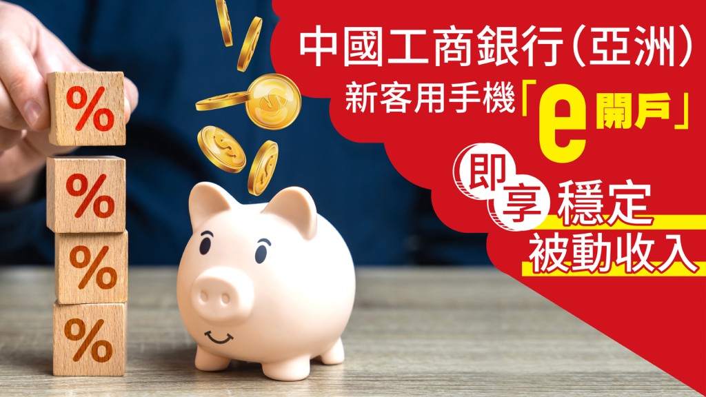 中國工商銀行(亞洲)新客用手機「e開戶」 港元定存特惠年利率3.5% 享穩定被動收入