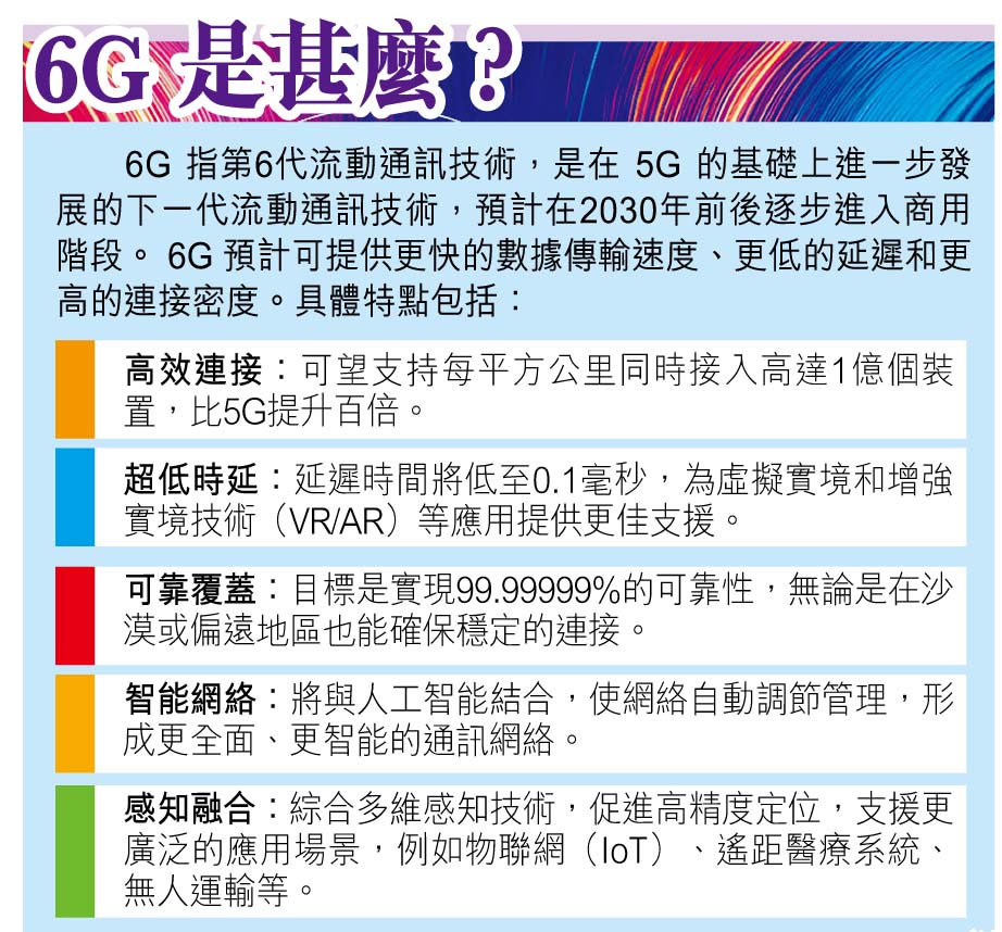通訊事務管理局辦公室通訊事務總監梁仲賢接受訪問時指出,自2020年香港全面推出 5G 服務以來, 5G 現已進入中期發展,即部分業界專家稱之為 5.5G 或 5GA(5G-Advanced)的階段,表示技術已相對成熟。根據 GSMA 2024年第三季報告,香港的 5G 連接指數在亞太區位居第一,全球排名第五,反映香港在 5G 技術發展的優勢和未來發展潛力。隨着技術演進,新一代通訊技術將會出現。
