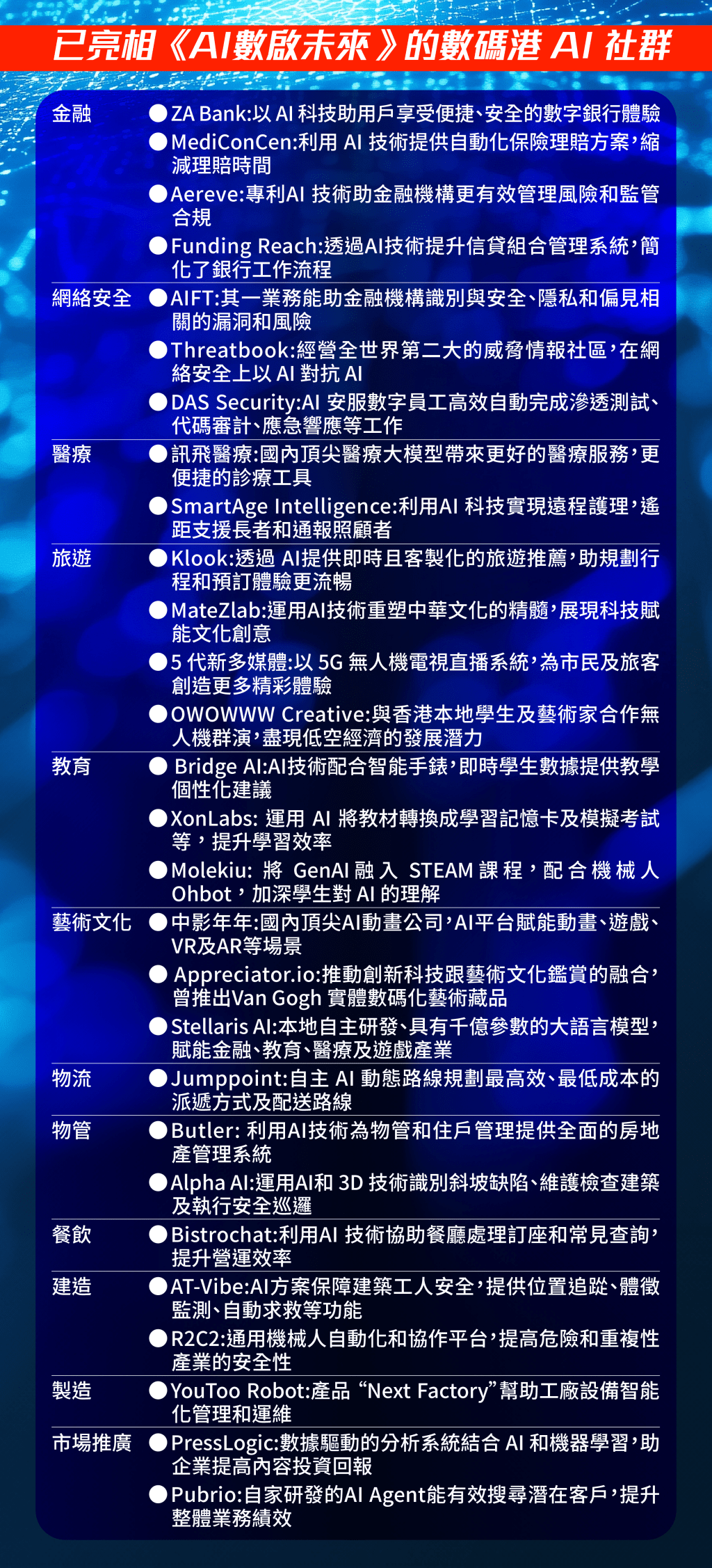 數碼港董事局主席陳細明指出,數碼港獲國家科技部認可為「國家級科技企業孵化器」,正聚焦第三代互聯網、區塊鏈、人工智能及低空經濟,並在政府支持下籌建人工智能超算中心,透過算力、算法及數據平台,推動香港AI生態持續成長。