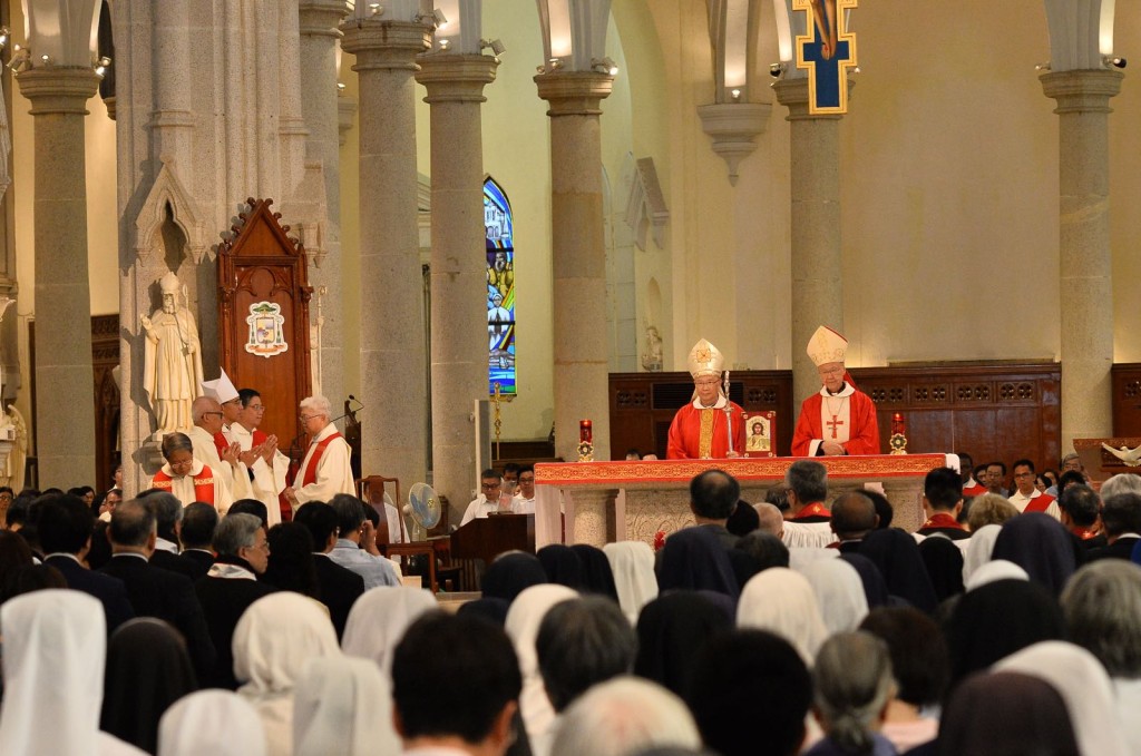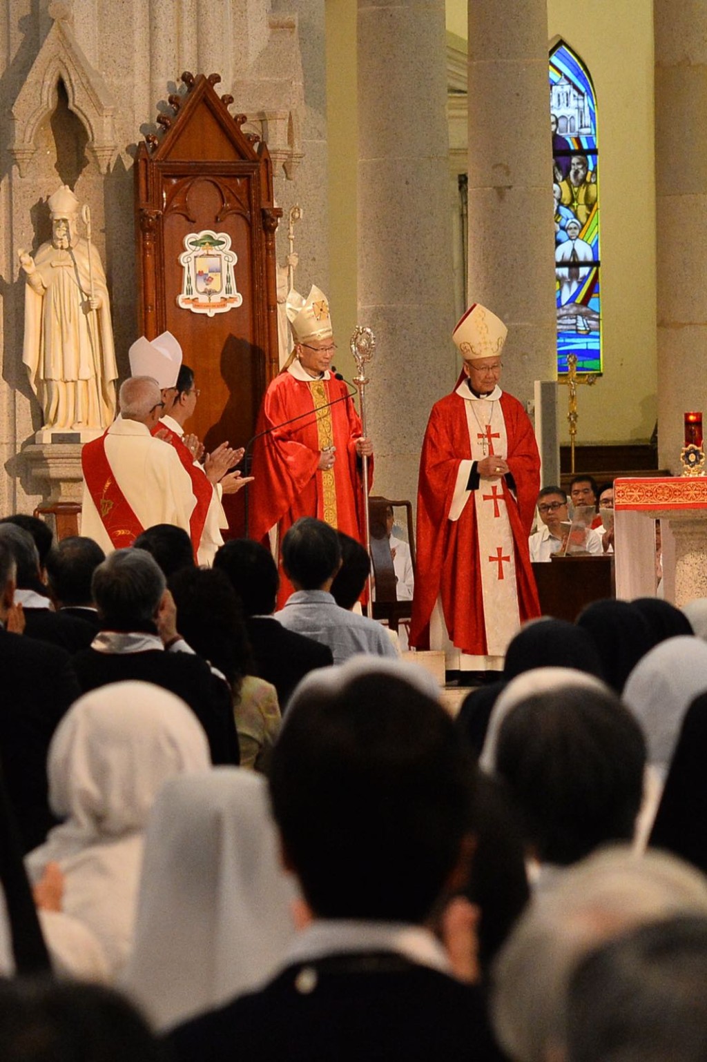 年屆78歲的湯漢樞機正式榮休,由助理主教楊鳴章接替出任香港教區第八任主教。教區下午在堅道聖母無原罪主教座堂舉行履任主教祈福彌撒,行政長官林鄭月娥、前特首曾蔭權、財政司司長陳茂波等均有到場。湯漢樞機在致辭時表示,時光的大輪不斷旋轉,新舊總要交替,感謝教友多年的支持,期望他們以同樣的知德, 接納楊鳴章。湯漢樞機又勉勵眾人要以感恩的心,面對過去;滿懷熱情,活在當下;秉持希望,擁抱未來。他其後引領楊鳴章到香港教區主教的座位坐下。