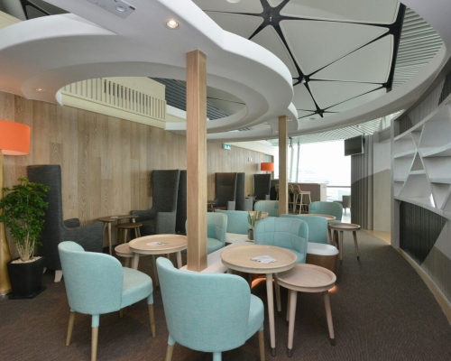 「商務旅客區」則設休閒區、個人護理區、觀景區、家庭樂及兒童區、20米長的美食廊等,照顧不同旅客需要,其中觀景區可遠眺興建中的港珠澳大橋及停機坪,黃昏時更可欣賞多陽餘暉。