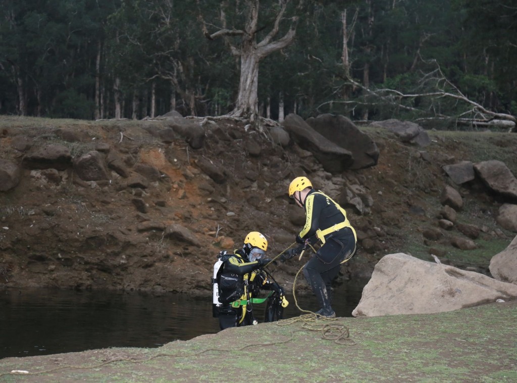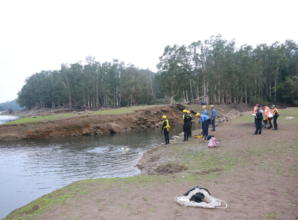 警方與消防員趕至,封鎖現場調查,消防處蛙人同時潛入水塘搜索,但搜索後暫時並無發現。直到晚上7時許,因天色漸黑,消防蛙人暫時收隊離去,待今日再行搜索。警方暫列作「求警協助」,派員留守現場。