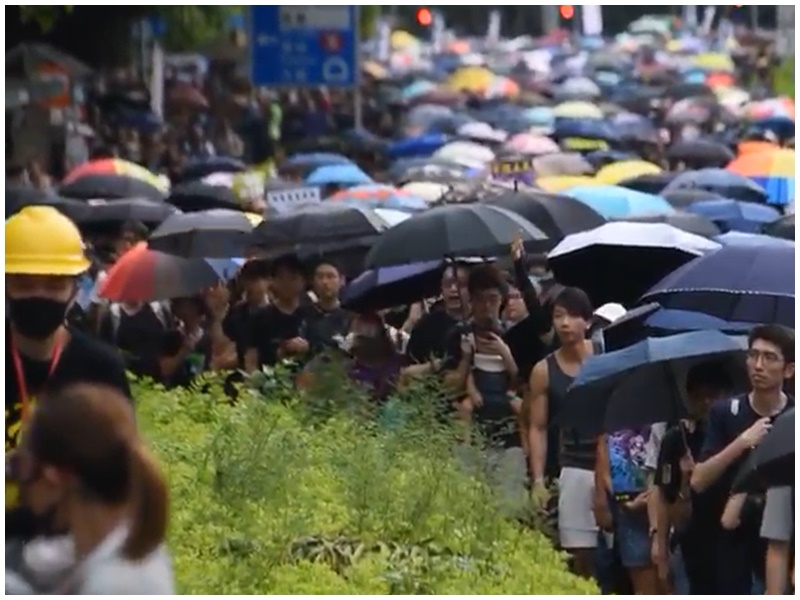 遊行人士沿途高喊「香港人加油」口號,也有人呼籲明日罷工。現場秩序良好。