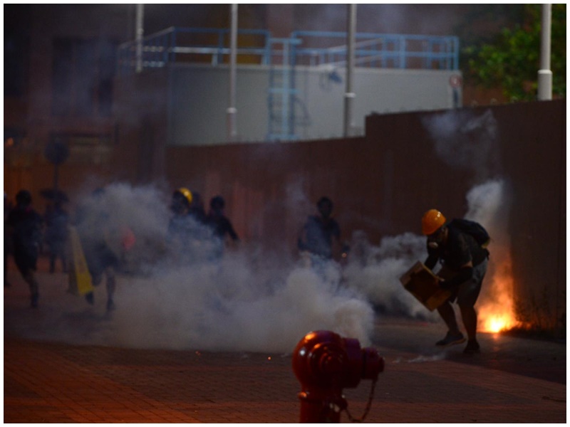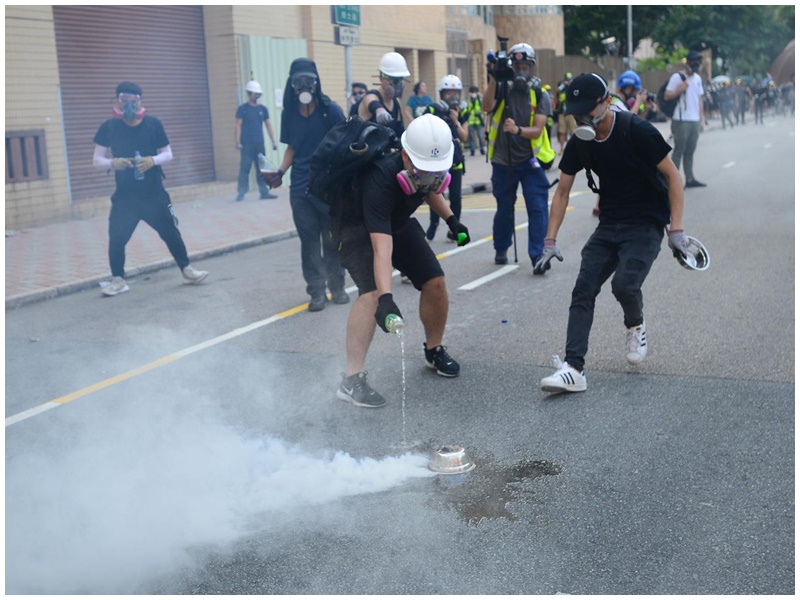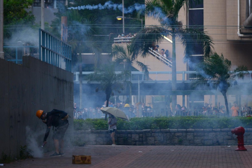警署內的警員持槍戒備,並先後在警署內舉黑旗及橙旗警告,隨即多次發射催淚彈及橡膠子彈驅散,當中部分催淚彈射入民居、教堂等位置,大批市民爭相走避。有示威者將催淚彈拋回警署內,也有人用水淋熄。目前,仍有大批示威者在天水圍聚集,而手持長盾的防暴警則在旁戒備。到晚上9時許,示威者向大閘塞雜物再縱火焚燒。至晚上11時,天水圍警署外示威者大部分散去。