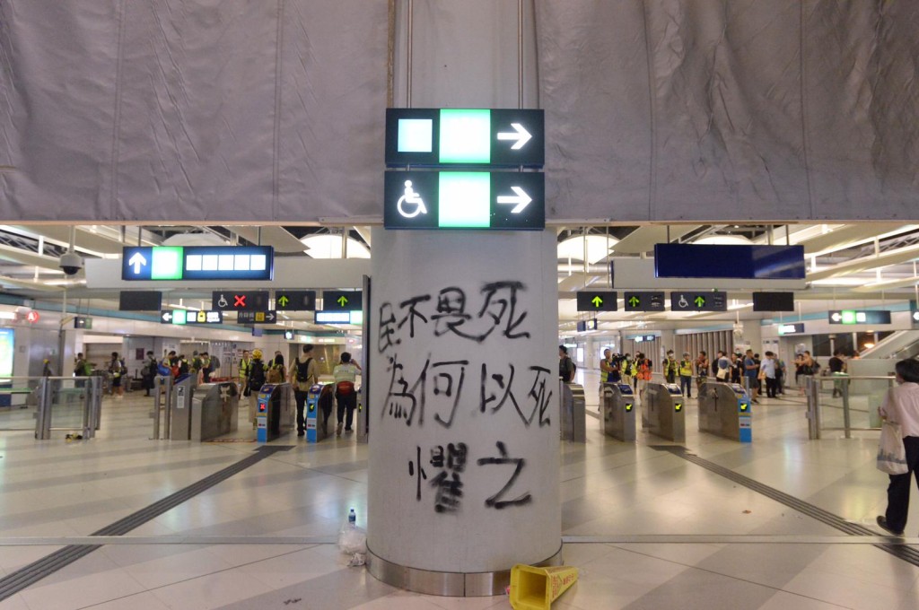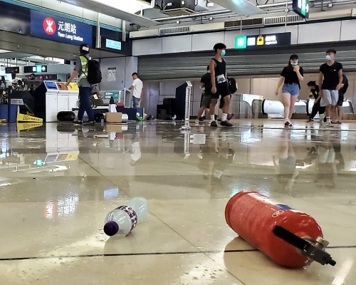 港鐵指出,部份人士擅自使用車站內的消防設備包括消防喉及滅火筒,亦將個別車站出入口的電動閘關閉,及將站內的設備包括報紙箱、垃圾箱等推倒以堵塞通道。車站職員亦發現多處牆身有塗鴉,及站內設施不同程度受損。港鐵強調,該等人士的違法行為不能接受,公司表示非常遺憾,已報警處理。