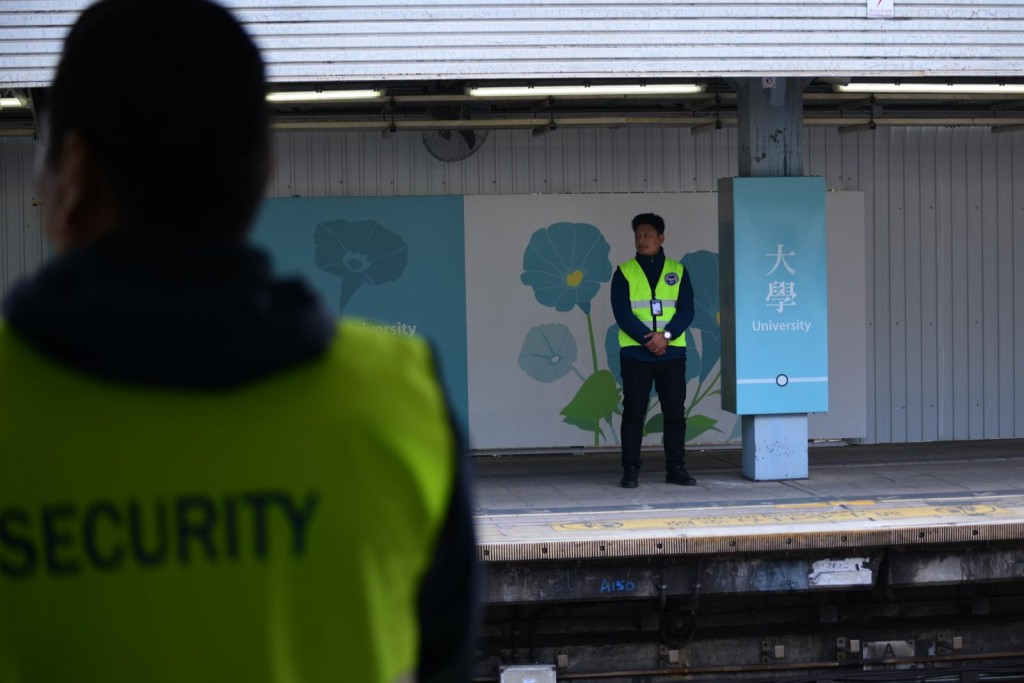 港鐵公司副車務總監李家潤表示,大學站明日僅能維持基本的服務,部分出入口重開,由於D出入口受到破壞嚴重,預料仍需要幾個月時間搶修,強調現時是以「開得幾多得幾多」的宗旨去服務乘客,呼籲乘客多加忍耐,而有關人士亦停止破壞行為。