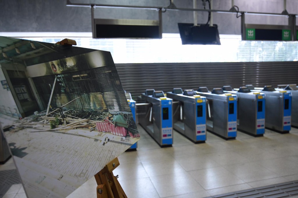 港鐵公司車務營運總管黃琨暐先生就指,大學站的部分乘客資訊系統受破壞,有訊號線需要重鋪,部分出入閘機亦未能正常使用,港鐵會安排流動手提裝置協助市民出入。另外,有升降機幾乎被完全破壞,強調公司要以安全為上,修復至安全正常運作才會重開,有需要的乘客可以使用斜道。