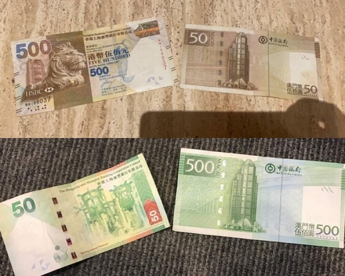 有網民在Facebook上載相片,將匯豐銀行發行的500港元面額紙幣,與中國銀行發行的10澳門元作比對,發現兩者的設計、用色及字款均極為相似,擔心有心混淆港澳兩地紙幣,以澳門元真鈔進行詐騙。