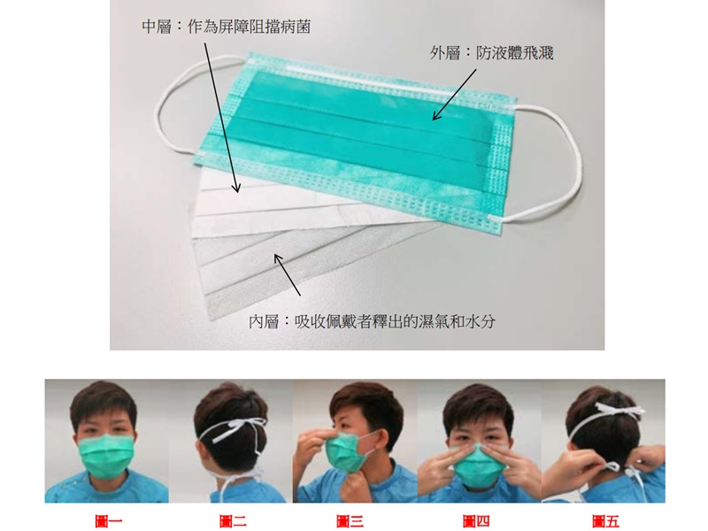 - 適時更換口罩。一般而言,外科口罩不可重複使用。另外,口罩如有破損或弄污,應立即更換。