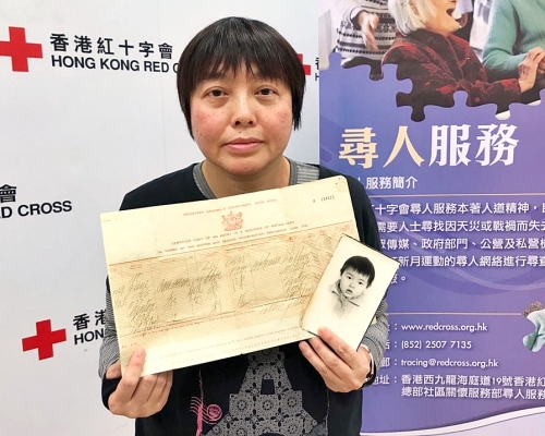 廖秀文指,養父母分別在05年及12年離世,她有感節日時特別孤單,雖有一名領養的弟弟,但不常聯絡。而她在朋友鼓勵下,向紅十字會求助。她指,估計生母陳金75歲,若可找到生母,希望了解為何轉由他人養育她,並可一起飲茶,為遺憾劃上句號。她坦言,若生母已離世,亦希望可找到她的子女。紅十家會呼籲,知情人士可致電2507 7135聯絡。