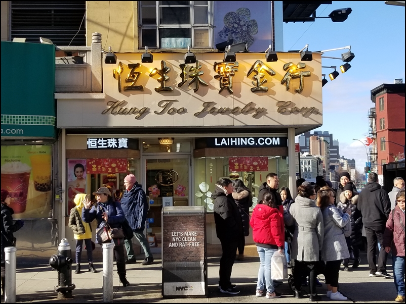 《星島日報》記者昨前往紐約華人聚居地──曼哈頓唐人街,該社區由多條街道組成,區內華人經營的店鋪和食肆林立,售賣賀年裝飾的商店逼滿客人,農曆新年氣氛濃厚,該區亦有不少珠寶店和金行,但因過往治安不靖,商戶習慣關門營業,顧客入店須由店內職員按掣解鎖,這保安措施沿用多年至今。