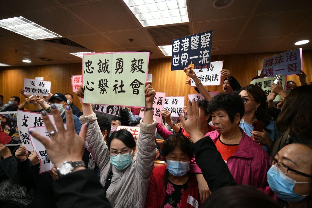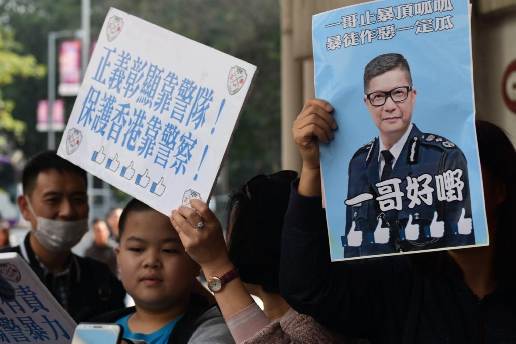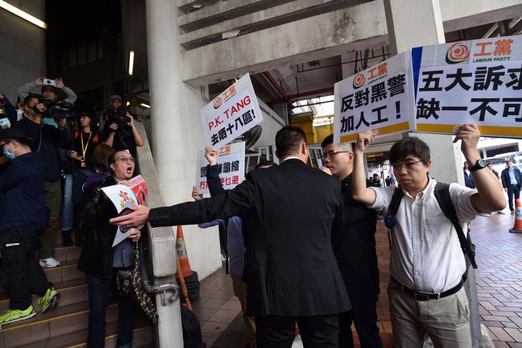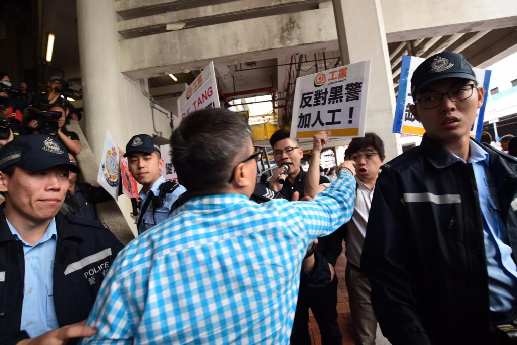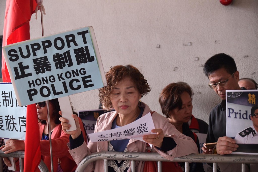 支持警察的團體手持國旗及標語,高喊「嚴懲暴徒,缺一不可」、「支持一哥,除暴制亂」等口號。期間工黨數名成員,包括工黨主席郭永健等到場示威,要求追究警暴,高舉「五大訴求,缺一不可」等標語。雙方隨後隔空對罵,有撐警人士罵工黨成員「時代垃圾」,有警員用鐵馬將兩批人士分開,並協助調停。