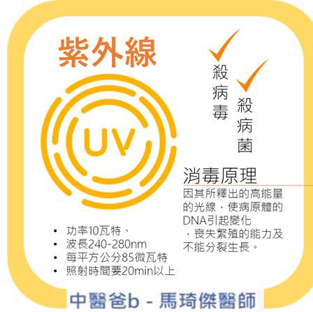 當然,不是只可以靠消毒清潔而滅絕病毒,首要提升免疫力,睡覺和飲食很重要,也可配合香包,強化呼吸道。另外,「中醫爸B」家絕不會使用漂白水或工業用酒精,因為毒性太高。而且,漂白水沖到大海後,跟本不能分解,污染環境。