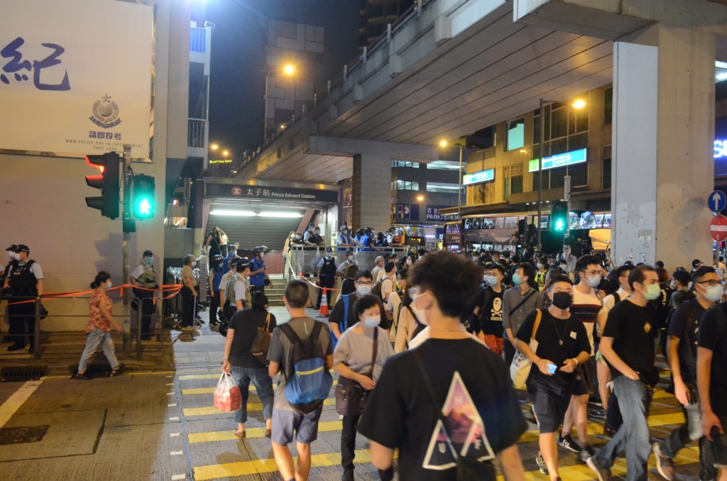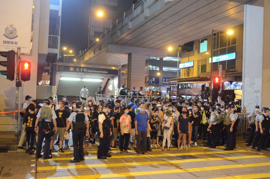 傍晚近7時,現場有身穿黑衣人士聚集,有人高叫「光復香港時代革命」、「香港獨立唯一出路」、「721唔見人831打死人」等口號,警方廣播警告在彌敦道及太子道西的人群散去不准停留,又要求傳媒代表身穿反光背心。警員又截查附近市民,搜查隨身物品,警員與在場停留人士發生爭拗。