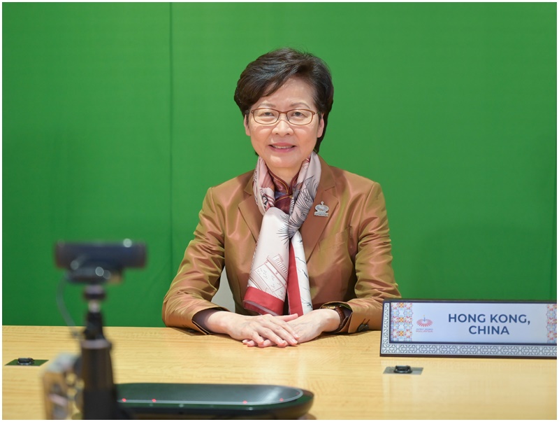 林鄭月娥在發言時表示,疫情為全球帶來前所未有的挑戰,各經濟體應以科學為本和市民的利益為依歸,摒棄政治考慮,堅定地帶領社會抗擊疫情。她指出,社會中的弱勢社群往往最受疫情影響,政府要特別關注他們的需要。