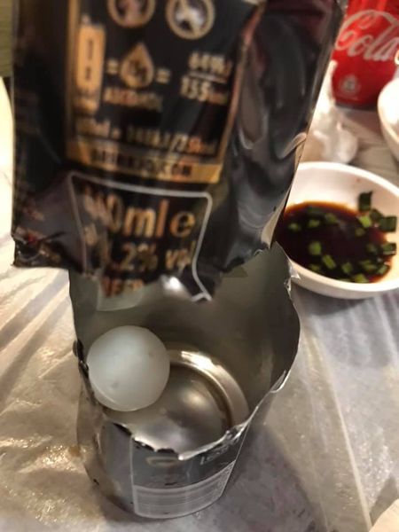 網民在「今晚煮乜好」Facebook群組上載相片,只見啤酒罐裡有一大個白色膠波,「請問有沒有人知道為何罐黑啤裡會有個膠波仔?差不多飲完先知裡面有嘢」。