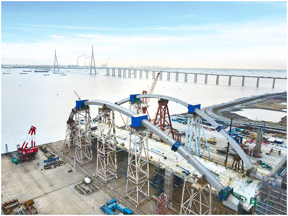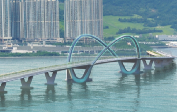 為提升施工效率,陳帆表示,雙拱鋼橋採用預製方式,在鄰近上海的南通市建造。經過1年半的生產及裝嵌,雙拱鋼橋稍後將安裝在將軍澳灣的橋墩上,成爲全港最大跨度及最重的預製鋼拱橋。
