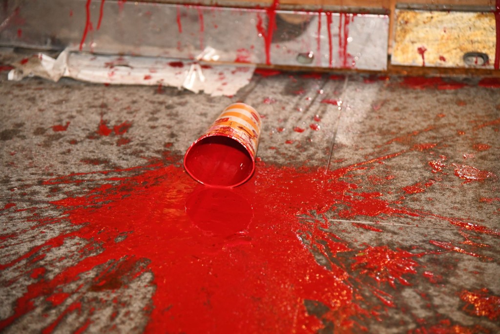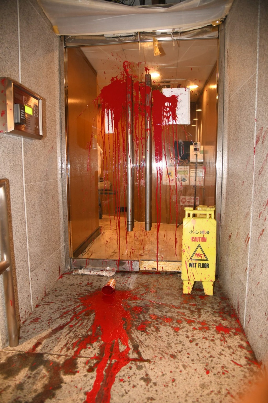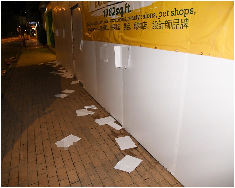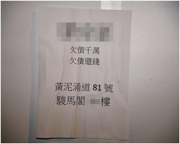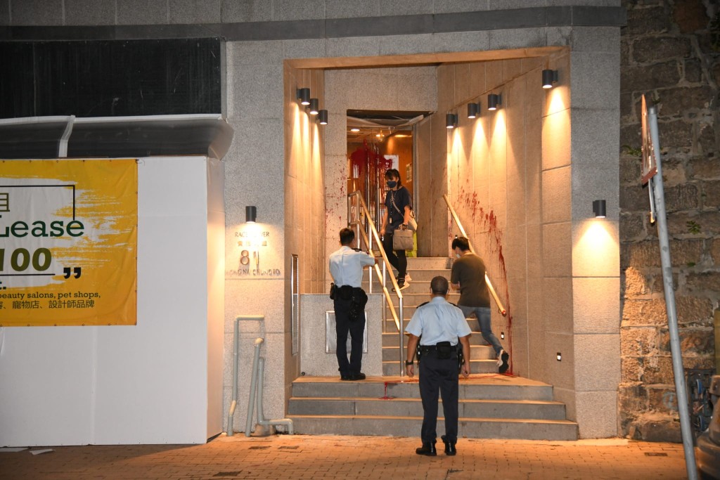 跑馬地駿馬閣外牆遭淋紅油 地上遺追債字條
