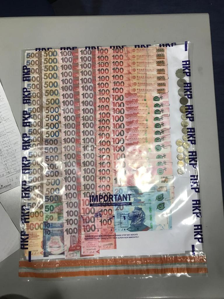 警員其後於涉案電單車的櫈底,檢獲一個黑色袋,內有現金約3萬元,以及30包、總重45克懷疑氯胺酮,市值約2.6萬元。