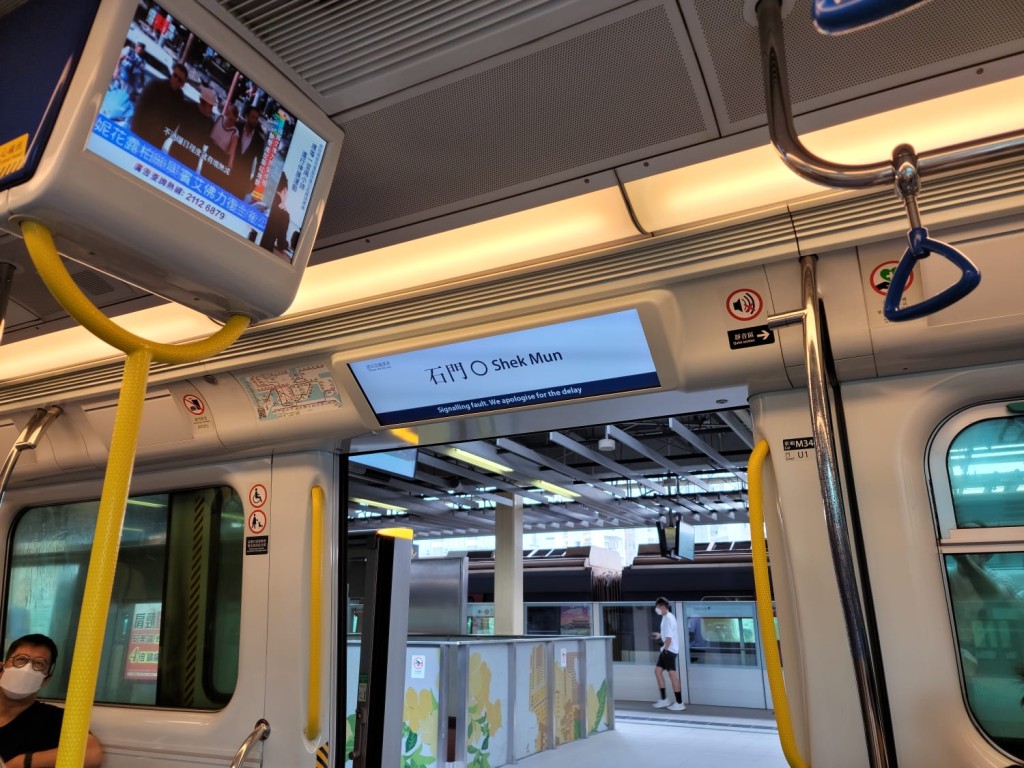 信號故障期間,列車顯示屏上有故障提示。有乘客表示,雙向列車停在石門站內已逾10分鐘。