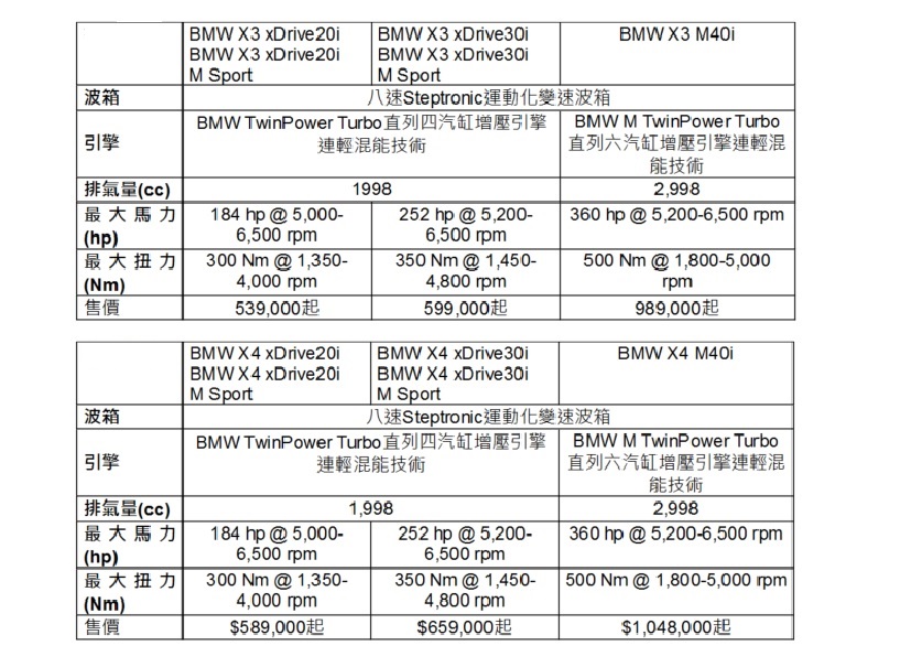 新車登場│BMW X3 / X4 改良版開售 混能加持