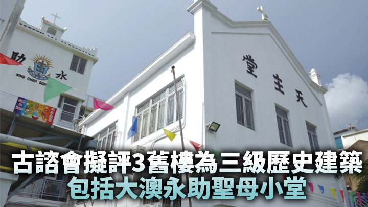 古諮會擬議三舊樓為三級歷史建築,包括大澳太平街112號永助聖母小堂、大埔深涌三王來朝小堂,以及打鼓嶺鳳凰湖24號至25號村屋。