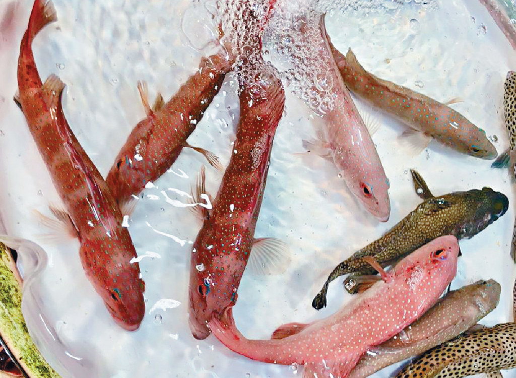 正值休魚期,魚檔不見鄰近海域的海鮮,而在炎夏日子,入口澳洲龍蝦不當造,但多了坐飛機來港的東南亞東星斑。日前路過深水埗北河街一個小魚檔,見到多盤東星斑,條條生猛游動,非常新鮮。魚販以大細條分開賣,除了在酒家桌上常見的大條鮮紅色的,原來還有藍色、粉紅色、褐色、黃色等,每一條身上都有斑點,紅色軀體就配白色,粉紅身就散佈淺藍色點,褐色就灑上黃點,煞是好看,大自然真的很神奇。