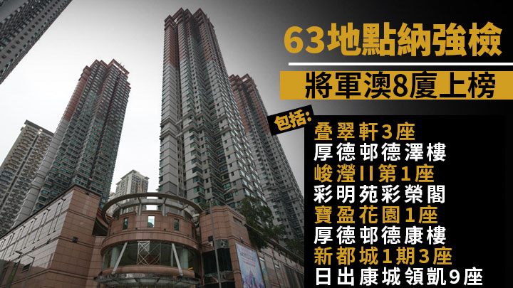 63地點納強檢 將軍澳8廈上榜包括新都城1期3座(附名單)