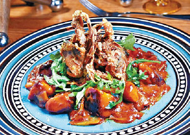 8.放上炸好的軟殼蟹即成。