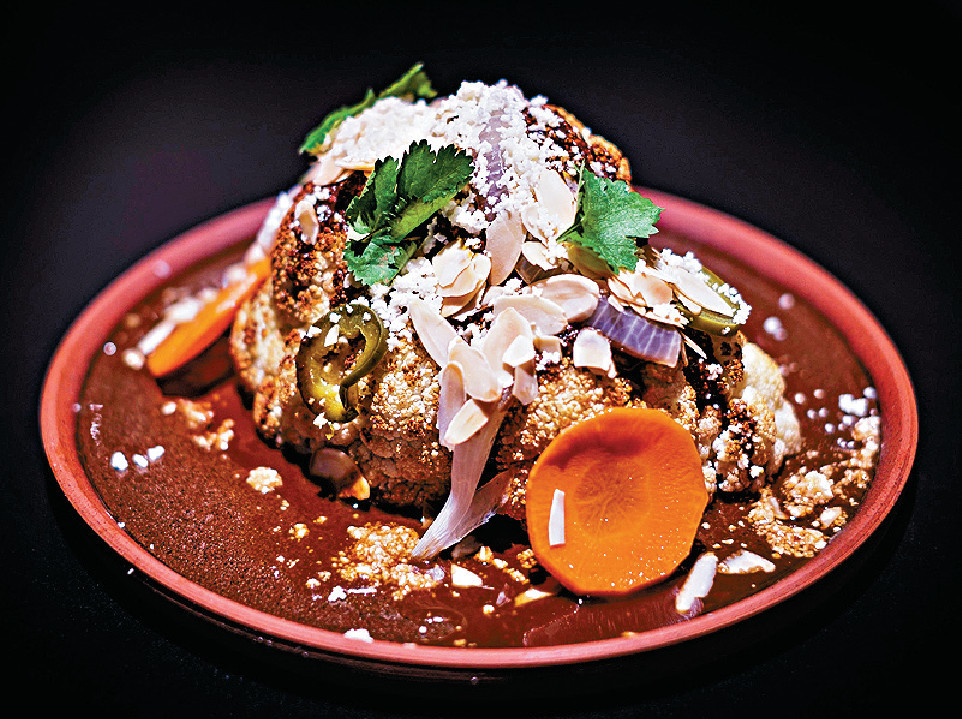 墨西哥菜雖然不少菜式都含肉類,Chicano亦不乏素食之選,必食有莫蕾醬煙燻烤椰菜花,經煙燻後的椰菜花加入香辣乳酪醬、醃漬紫洋葱、杏仁片等配料,再倒上以朱古力及辣椒為基底的黑莫蕾醬炮製而成,蛋白質豐富,是低碳菜式好選擇。