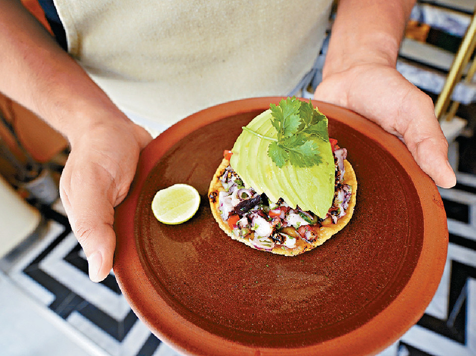 眾多傳統菜式中,墨西哥國民小食捲餅必定是主打,將慢煮牛舌切成薄薄一片,烤至外焦內嫩,Topping配上自家製莎莎青醬、青檸汁,伴以墨西哥捲餅品嚐,滋味又滿足。另一款開胃菜慢煮八爪魚多士伴牛油果,八爪魚口感軟腍帶嚼勁,加入以傳統古法醃漬的青檸汁,配合薄薄捲餅及牛油果一同享用,不失鮮味之餘層次豐富。兩款必試主菜同是墨西哥家常菜燉肉料理,首推Chile Verde莎莎青醬燉五花腩,五花腩經一晚時間燉煮,肥瘦適中,與莎莎青醬融為一體夠惹味。Birria香辣燉牛面頰則把香料、蔬菜加入牛面頰中一同燉煮,牛面頰肉軟嫩多汁。