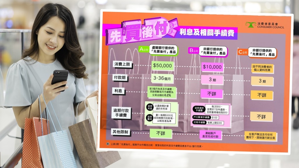 另外,消委會關注市場上由非銀行提供的「先買後付」分期付款產品的規管問題,促請非銀行提供的「先買後付」的平台向公司註冊處申請放債人牌照。此外,這些平台亦可參考金管局最近對銀行發出的指引,盡快落實保障消費者的措施。