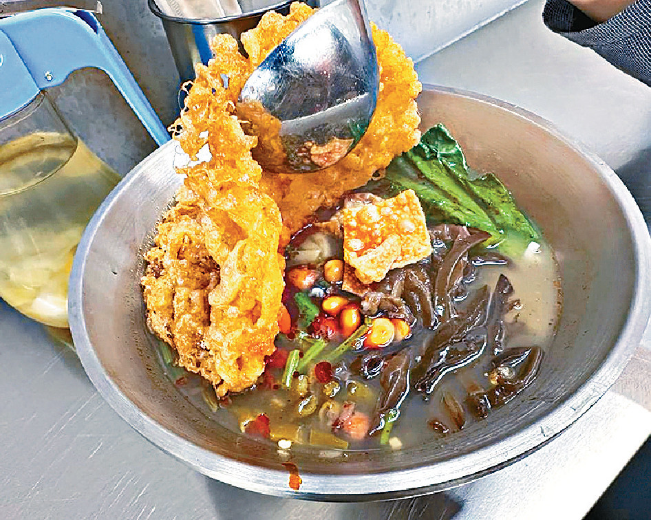 何謂「螺螄」?他拿出一罐東西,打開,一粒一粒乾海味,是熬湯底的靈魂—淡水石螺乾,產自廣西柳州。肥哥哥說︰「把螺螄磨粉,加肉和骨熬湯幾個鐘,成為靚湯底」,配料豐富,有酸筍、木耳、花生、油炸豆皮,再加一隻炸蛋,淥好米線,大功告成,可以選微辣、中辣、特辣。我想試湯底真味,選超微辣,呷一啖湯,清鮮無比,螺肉的甜,與臭臭的酸筍,十分夾味,一吃上癮。差點忘記那件炸蛋,把蛋發散,經筲箕下油鑊,炸成疏散炸蛋餅,鬆鬆軟軟,蛋香濃郁。