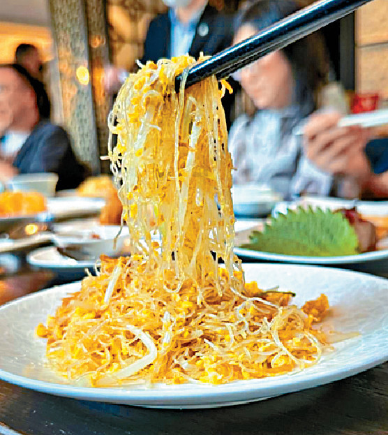 早年喜歡吃魚翅,惟環保人士近年提倡保護鯊魚,大家少碰魚翅,以免被人手指指。幸大廚匠心獨運,不用魚翅,憑高超手藝,打造精緻的桂花瑤柱炒米粉,吃得安心,也對地球有益。