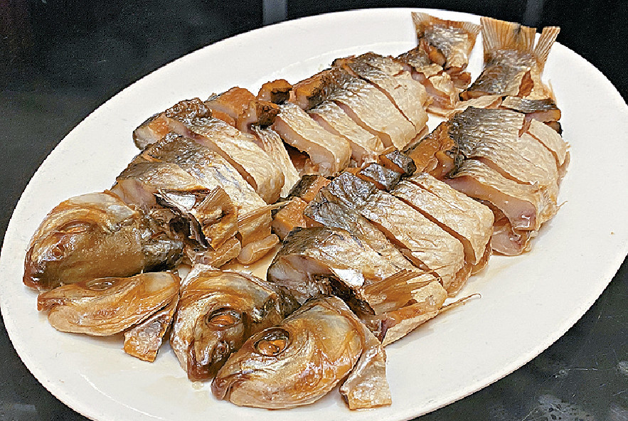 這天開年飯席設富嘉閣,阿一真徒李文基的朋友開關後從順德歸來,恰巧也帶來風乾鯪魚,與十多年前那一條風乾鯪魚不同的是,當年是原味,今次是搽了點生抽豉油,而且按肉質的緊致度判斷,至少風乾了兩夜以上。