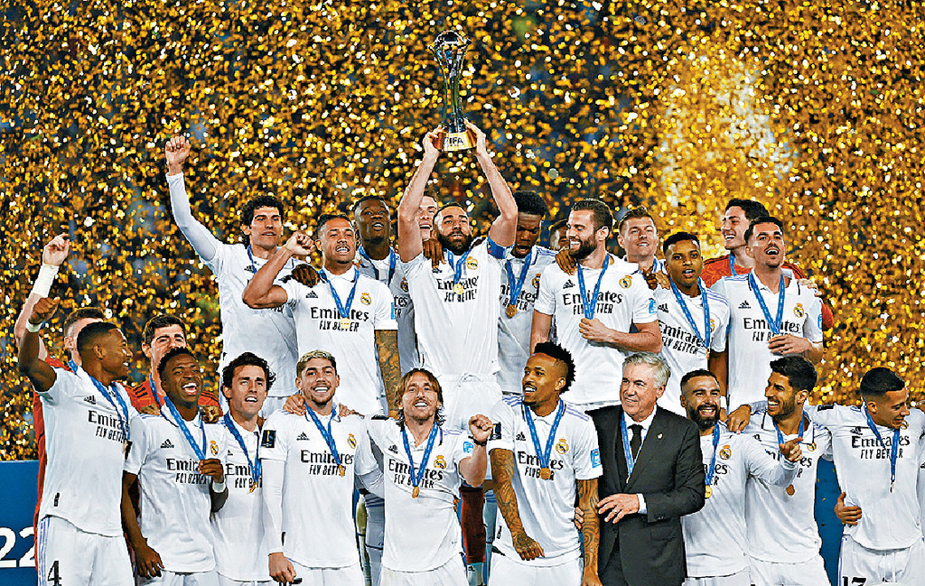 周六世界冠軍球會盃決賽,皇家馬德里憑雲尼斯奧斯祖利亞和費達歷高華維迪梅開二度,加上賓施馬(舉盃者)建一功以5:3擊敗希拉爾,第5度奪世冠盃。今夏約滿的33歲皇馬中場卻奧斯賽後表示會於日內公佈去向。
