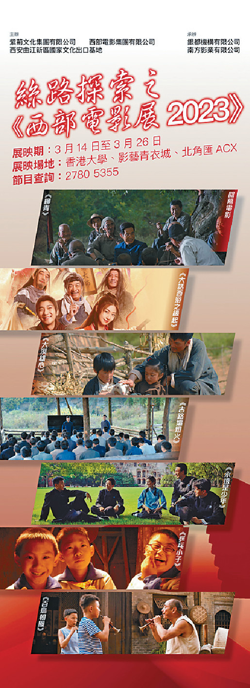 曲江新區管理委員會舊年同紫荊文化集團有限公司簽署戰略合作框架協議,決定由至3月26日喺香港大學黃麗松會堂、青衣城影藝戲院同北角匯ACX戲院舉行《西部電影展2023》,希望促進同陝西嘅影視產業交流合作,講好中國故事。而家曲江新區管理委員會特別送出其中12套電影各20張戲飛比讀者,每場將挑選出10位得獎者,只要掃瞄右邊QR Code並答啱問題,就有機會獲得門票兩張!
