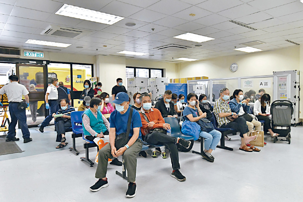 聯合醫院的急症室昨午有約30名前來求診的市民,間中有病人到門外「唞唞氣」;姚女士因低血壓,在先生的陪同下到醫院急診室求診,未能預計等到甚麼時候上病房。