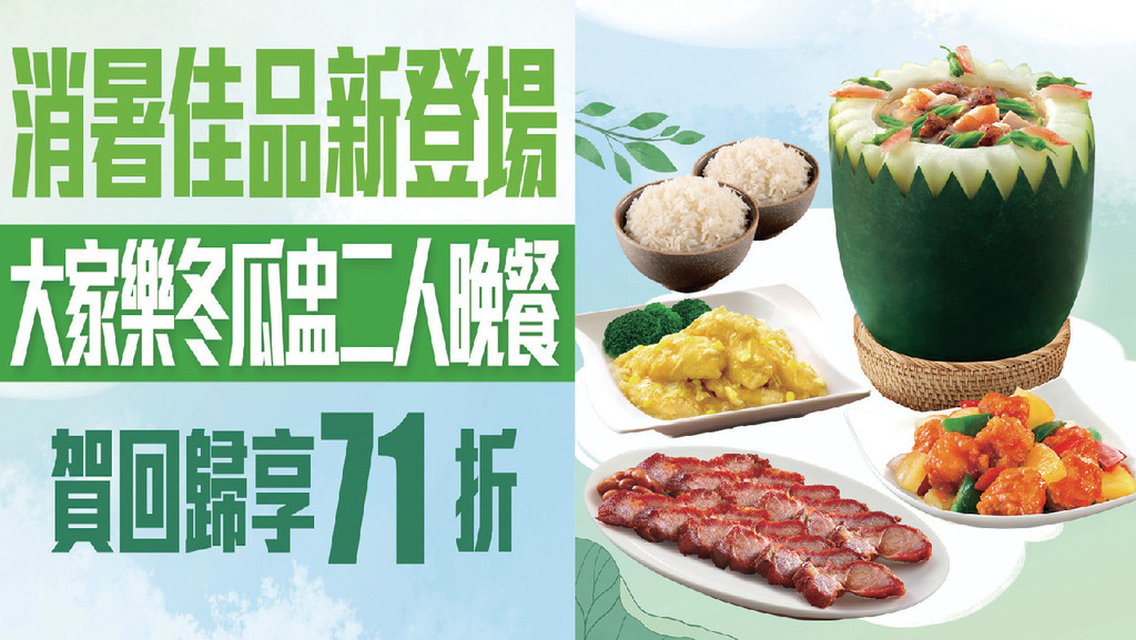 消暑佳品新登場 大家樂冬瓜盅二人晚餐 賀回歸享71折