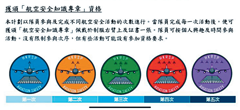 本計劃以隊員參與及完成不同航空安全活動的次數進行。當隊員完成每一次活動後,便可獲頒「航空安全知識專章」佩戴於制服右臂上及證書一張。
