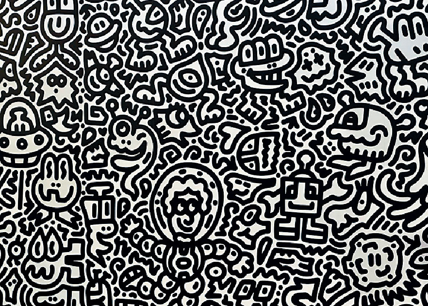 英國Pop Art藝術家Mr Doodle,以密集的線條和簡約圖案塗鴉,憑濃烈的個人風格(被喻為意粉塗鴉)為人熟悉。今年23歲的他,已經畫了21年之久!當2歲時,閱讀漫畫之後,心喜之,拿起筆臨摹,一發不可收拾。直到長大,他以塗鴉賺外快,供自己上學,然後受人愛戴,晉身藝術家。