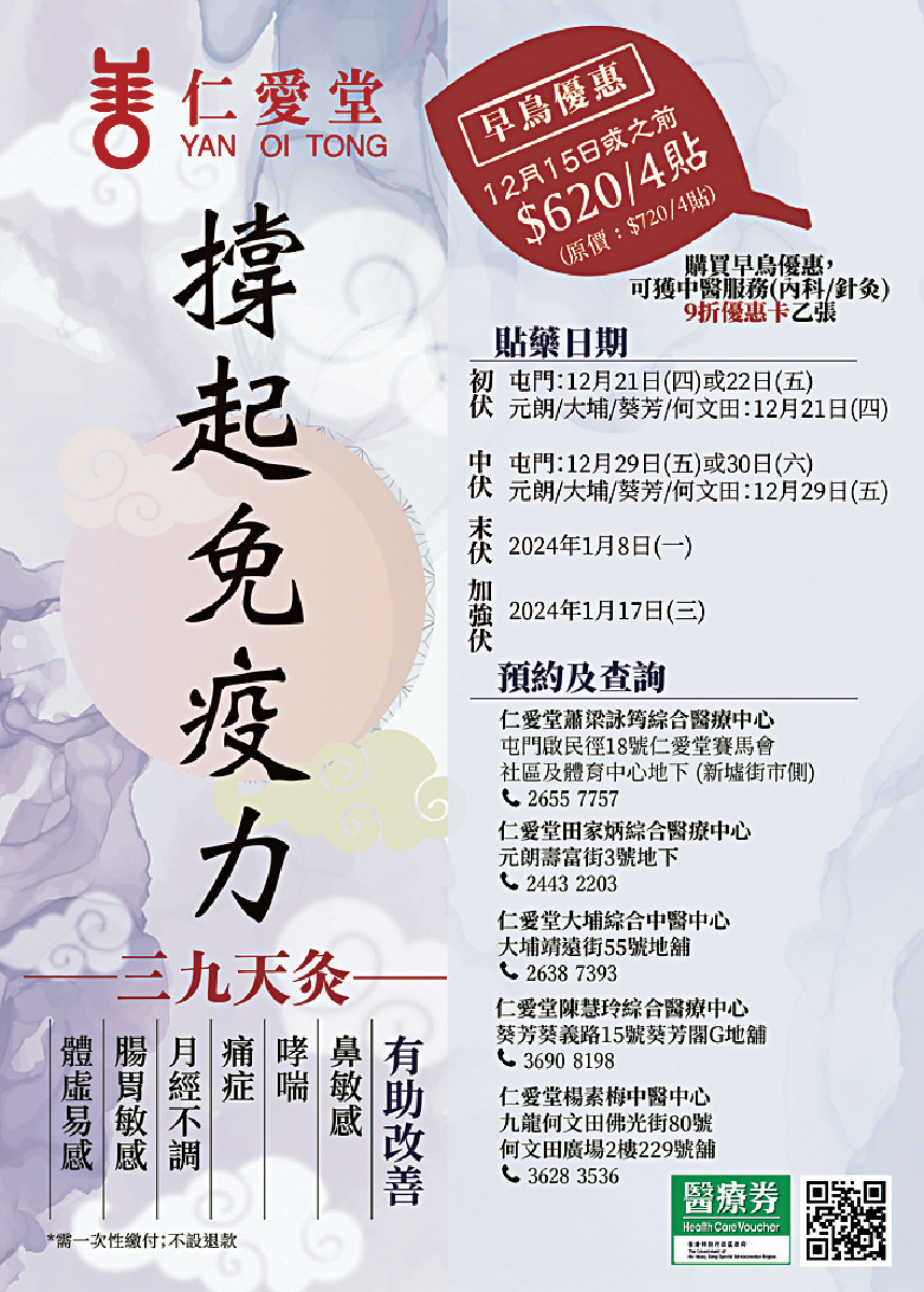 Jacky哥 - 仁愛堂推出「三九冬灸」早鳥優惠|企業熱話