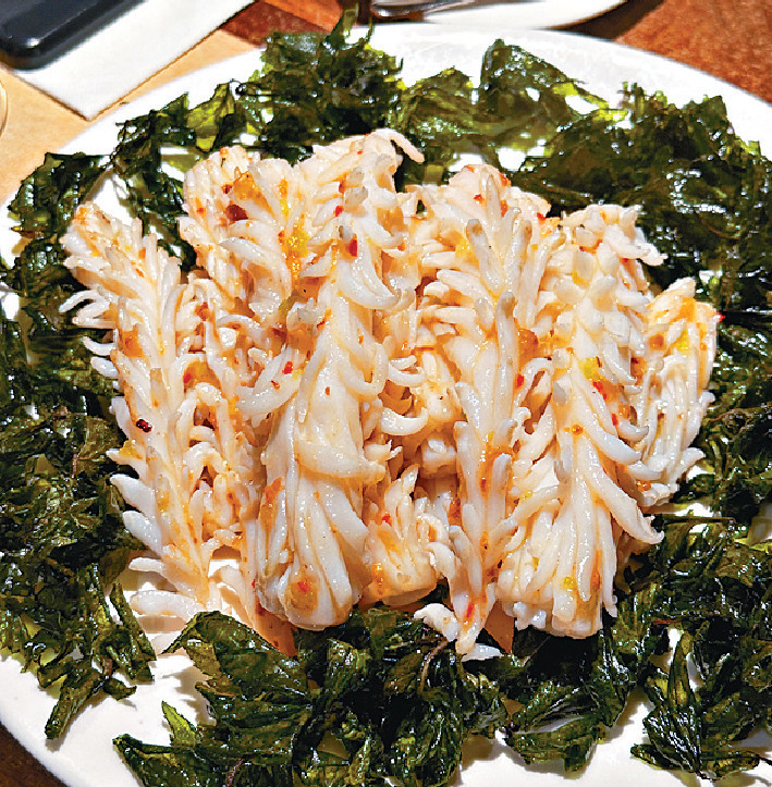 清湯騸牯牛腩有3個部位:爽腩、坑腩和牛筋。牛腩肉味濃郁,湯底加了胡椒,喝一啖人就暖起來。油泡南澳島鮮魷不但材料靚,更有刀功把魷魚𠝹花,質感和味道俱佳。