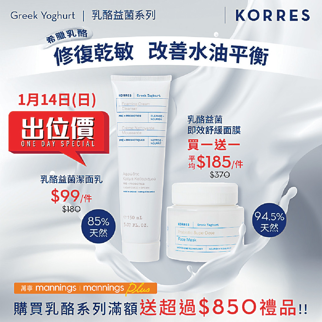 喺1月14日,萬寧會推出一日出位價,乳酪益菌潔面乳每件$99(原價$180)發售。而乳酪益菌即效紓緩面膜亦有買1送1優惠,平均每件$185。另購買乳酪益菌護膚系列滿$300/$600,透過以下WhatsApp帳號登記仲可以額外獲贈禮品套裝,價值高達總值$850。