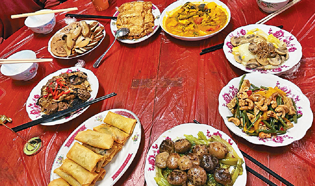 以為簡簡單單,怎知菜單頗豐富,有生菜炆花菇、腰果炒素肉、香煎腐皮卷、香茅咖喱瓜菜、羊肚菌炒粗齋、白切雞脾菇素扎肉、磨菇津白和酥炸素春卷,一共八大碟。